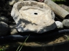 Wir haben noch ein Becken angebaut. Das Überlaufbecken bekommt Wasser aus dem Teich und läuft dann wieder über eine Schale in den Teich.